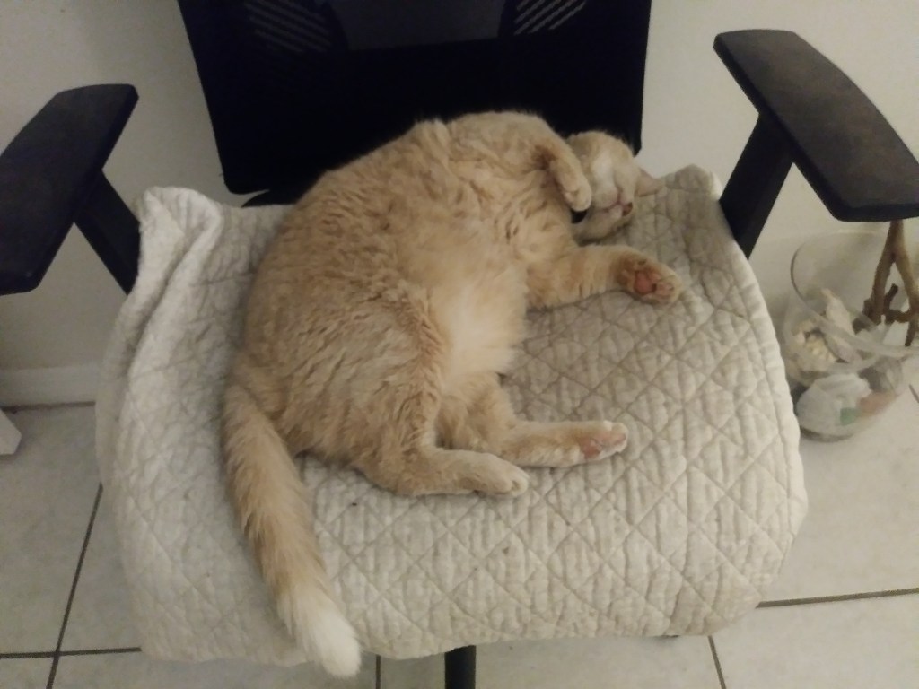 Both of my baby girls lost weight at the end. We think Callie essentially had renal failure which is very common in cats as they get older, and possibly cancer as well. With HoneyBun, it was determined from blood tests and urinalysis, that she had liver failure and quite possibly cancer. Earlier in the week that she died, she had very high white blood cell counts, but no fever, very high liver numbers and gall bladder numbers. And she was dehydrated. So she got fluids and a long-acting antibiotic by injection and some other stuff as well as a stay overnight with my vet. Tuesday, she came home and she seemed to be doing much better. We scheduled an ultrasound for her the following day with a vet that would come from out of town, hoping to figure out if she had a mass on her liver or just more of an idea of what was going on. That was also when Tropical Storm/Eta was heading toward and made landfall on the Gulf Coast, right around the same time that out of town vet was trying to get to Naples, so her appointment was postponed to the following week.