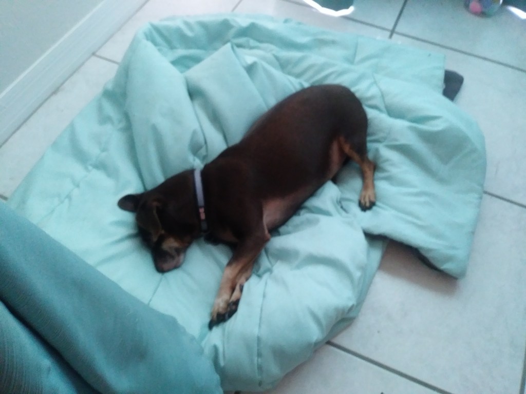 With HoneyBun, I’ve never know her true age. I adopted her from the Animal Rescue League of Boston, whose vet had determined she was about 5. I took her to my own vet who said, “mmmm I think she might be older, like 8 or 9.” Older was fine with me. I’ve had a fond spot in my heart for seniors (the underdogs in the pet adoption world) for a long time. I’ve always been Team Animal Underdog. So I’ve always hoped that she was on that younger end of the age range, but it started to be more clear this year that she was more likely on the later end. She developed some cloudiness in her right eye, as you may see from one of the pictures of her. I had my vet here in Naples check her out. It wasn’t an ulcer, and it didn’t seem to be hurting her or like it was affecting her vision. We used some ointment for her eye, which she very sweetly tolerated (followed by a treat, of course). That was back in August.