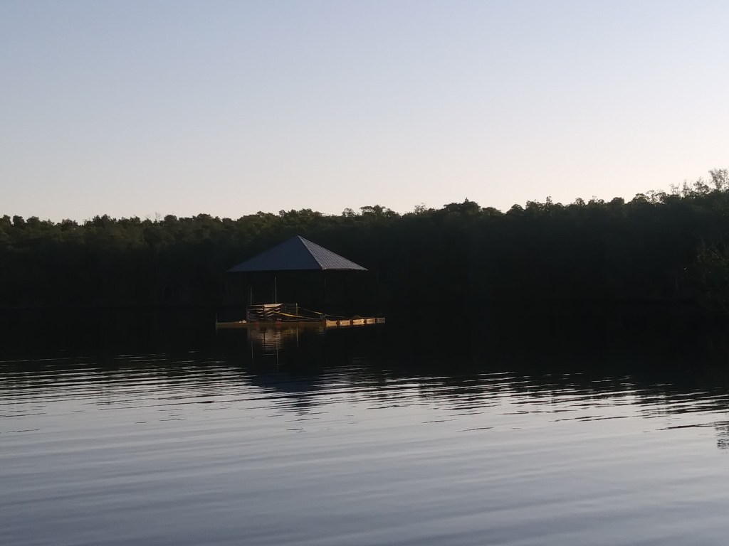 There are a few of these docks in this cove area but this one appears to be sinking. Not sure why they are there, honestly. You never see anyone on them. But note the stillness of the water.