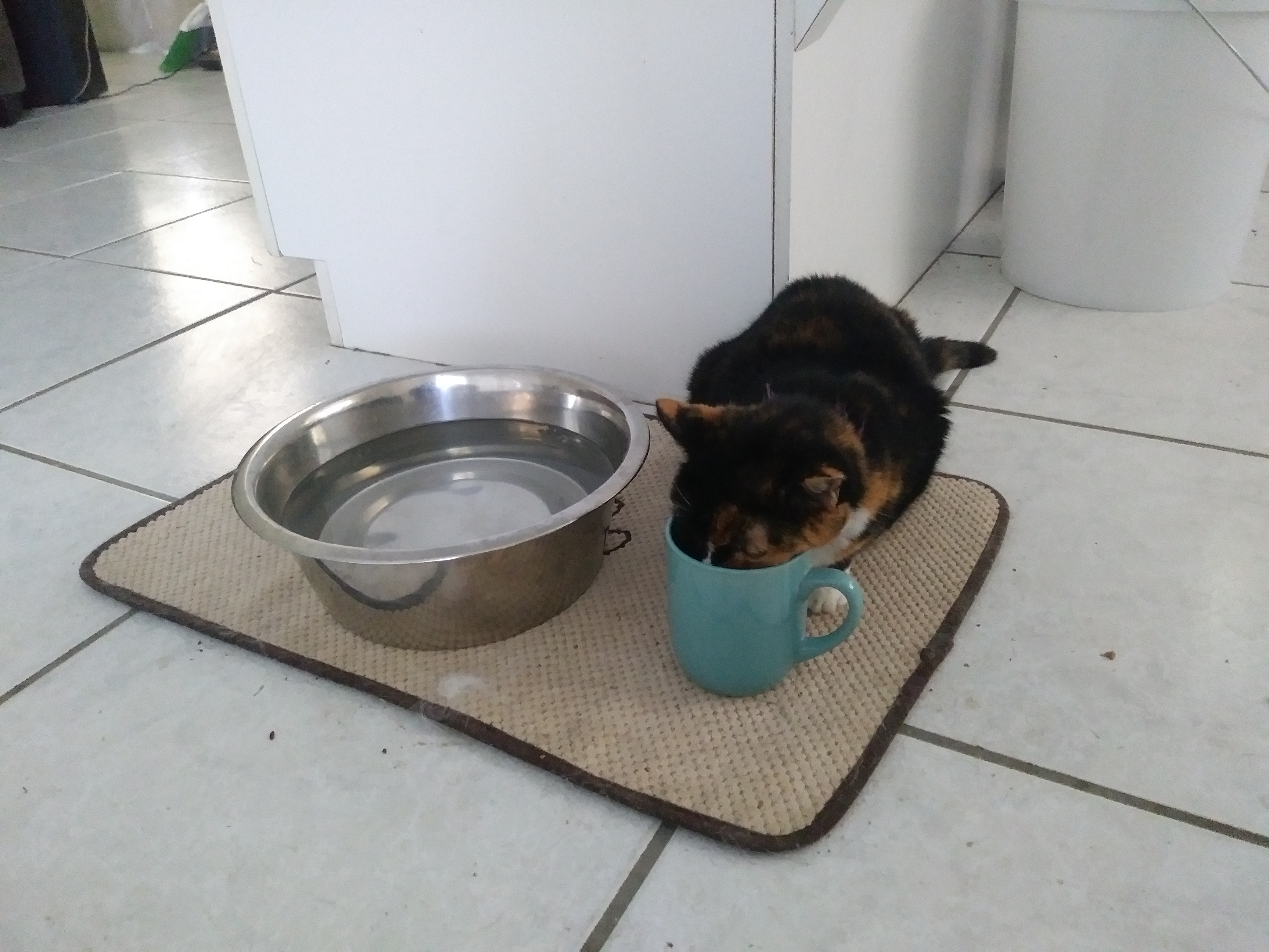 And I will close this post with a picture of my teeny-tiny Callie drinking out of a giant bowl of water containing LOTS of ice cubes.