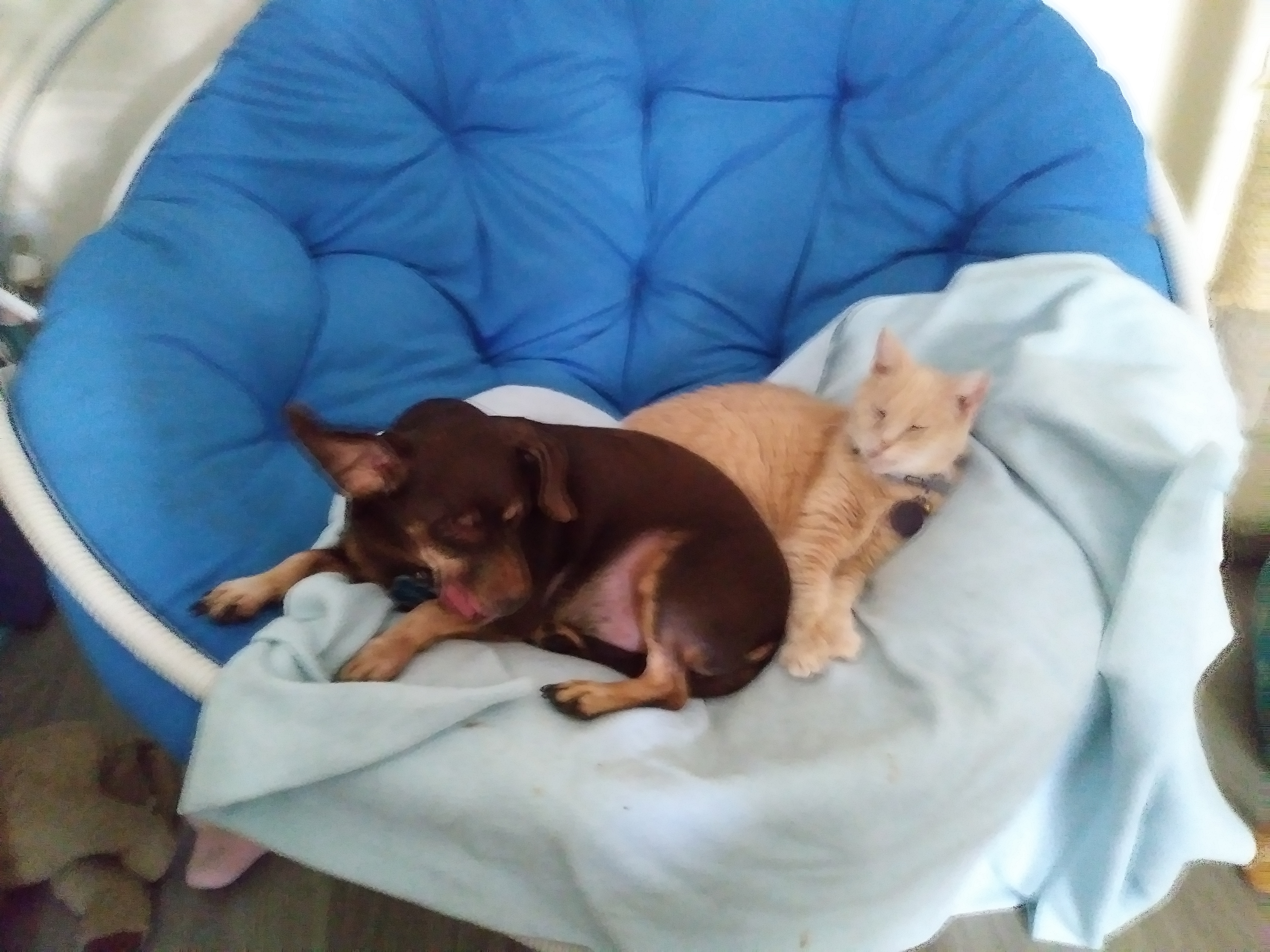 You’ll note two pics have both Snuggles and HoneyBun. On the round papasan chair, I can just imagine HoneyBun saying, “What the….dude, I was here first!” Note that both of my girls liked to drink out of their own individual glass/mug, given a choice.