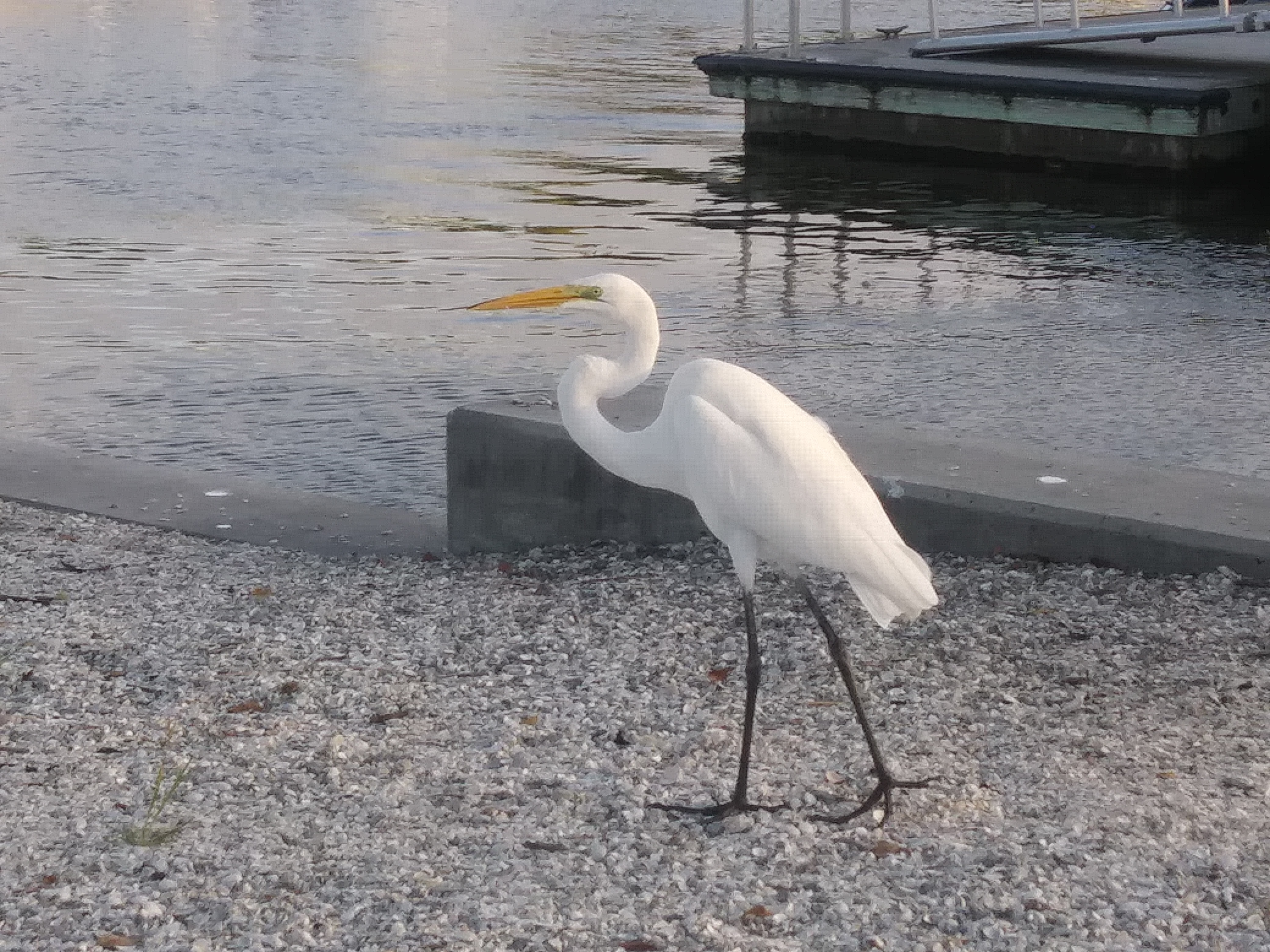 Up close and personal shot of a great egret hanging out at a boat launch a few weeks ago.