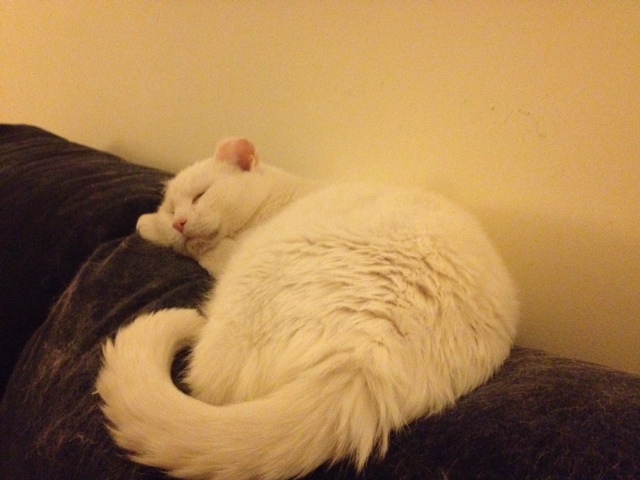 After visiting with Fancy, I had some time left before I had to return the zipcar, so I spent some time with two cats whom I was told were absolutely terrified when they were brought in. They were both what they call “known strays” in their neighborhood. You could definitely tell they were each scared when I started to talk to them in turn, as they were shaking and their breathing was rapid. I found that soft talking and some quiet singing seemed to calm each of them down (and the girl cat especially appreciated Temptation treats.) Each of them were closing their eyes and nodding off as I left them. The boy cat even let me pet him, ever so lightly. So I hope to help put them both at ease again this Thursday when I go in on the holiday.