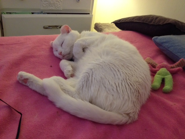 Whereas HoneyBun had been only slightly anemic on Monday, her blood cell count on Saturday was down to 12 percent. The emergency animal hospital vet agreed with me that to let her go would be the kindest thing I could do for her. So I said goodbye. She and Callie’s ashes are right next to each other in my bedroom. I have all of my animals privately cremated these days so they can always travel with me and be with me, no matter where I may find myself. (For those of you not familiar with the term, “private cremation,” there are two types of animal cremations. Private means you get their ashes back. Group cremations means you don’t get the ashes back.”